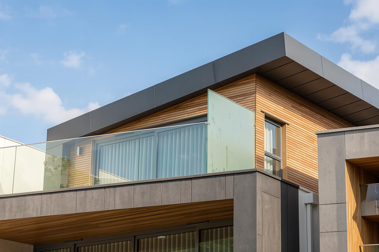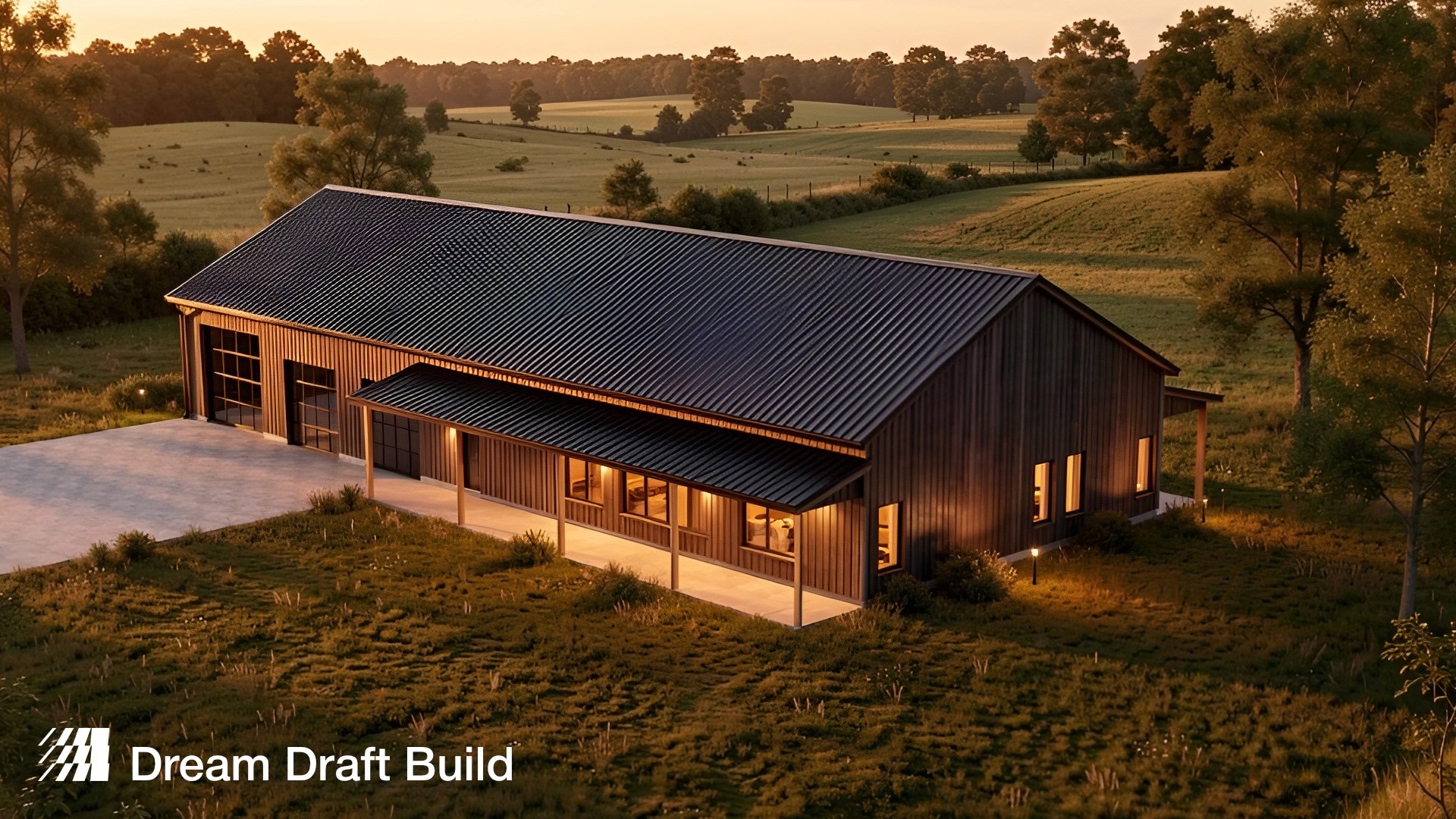 0001 - A modern barn-style home with sleek dark exterior metal siding that blends rustic structure with contemporary design.