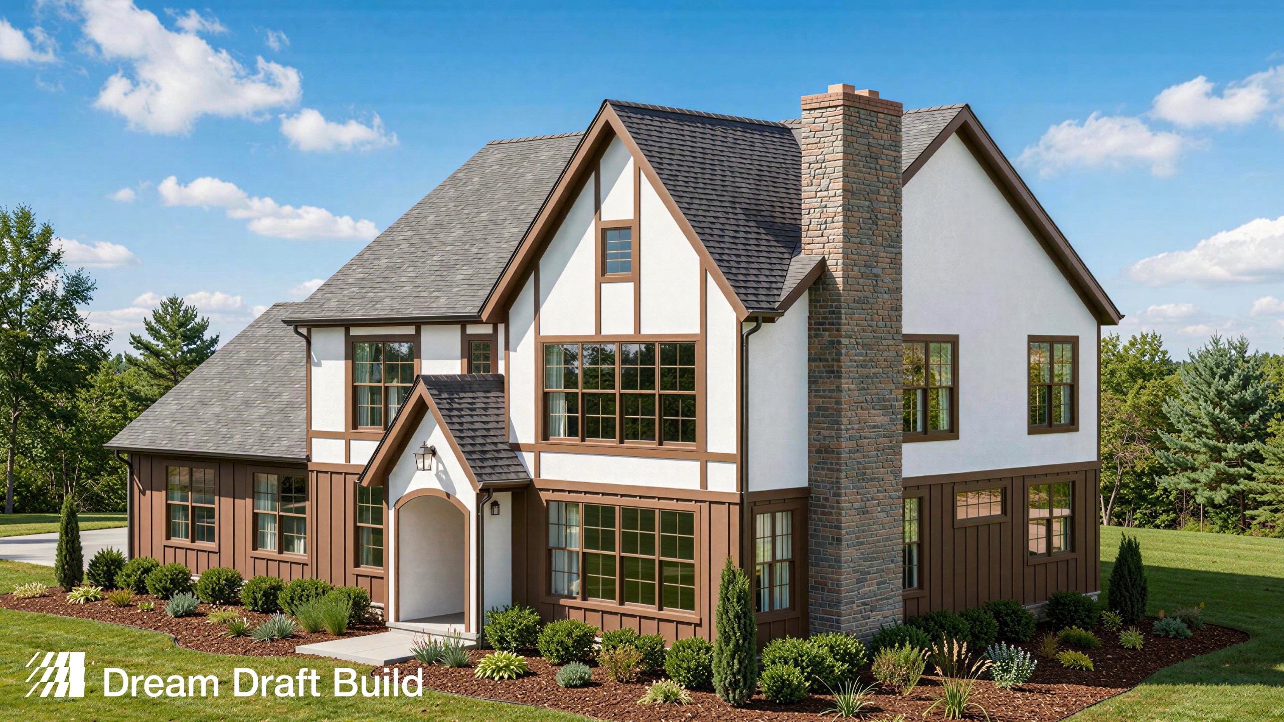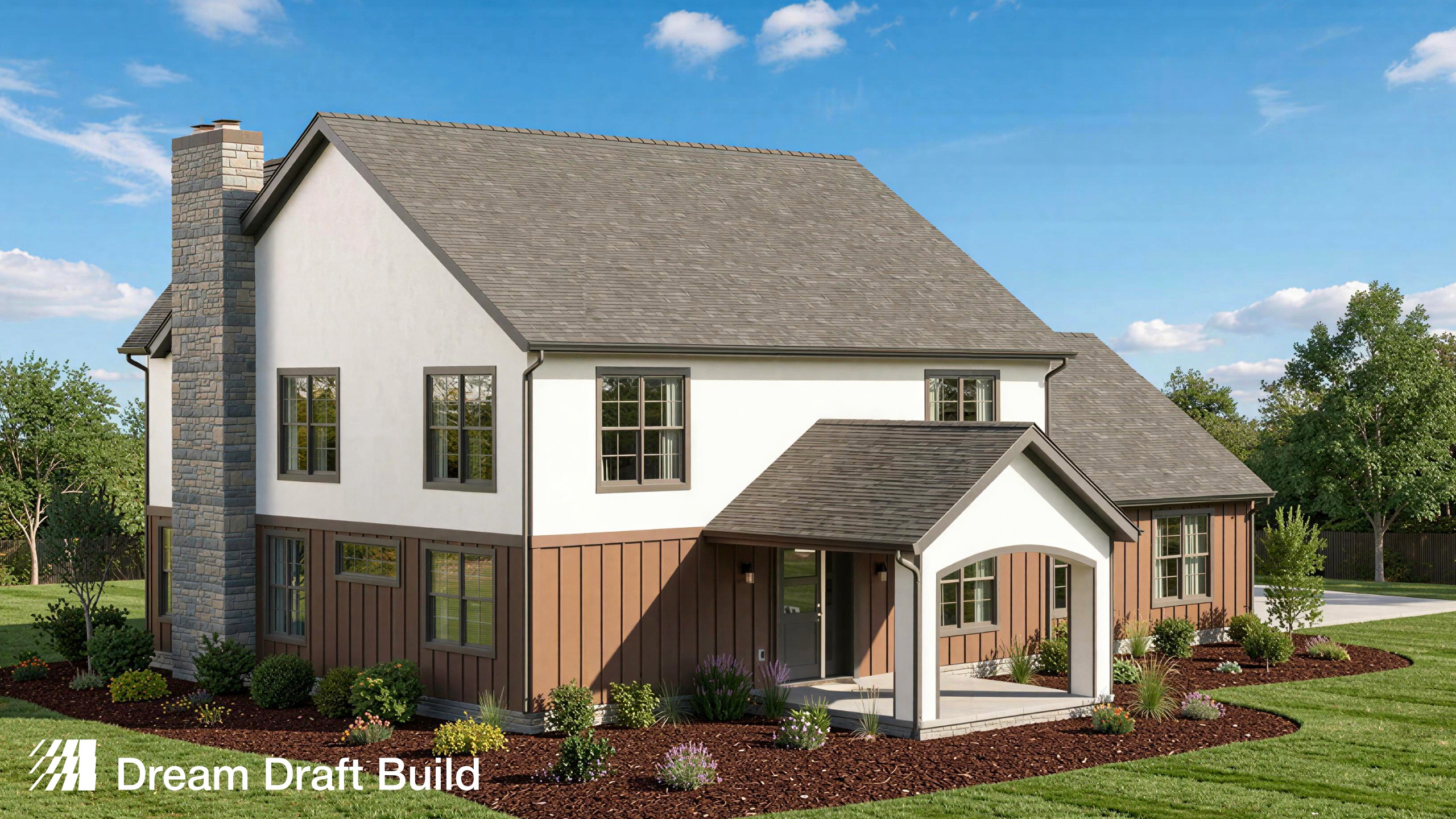 This thoughtfully designed cottage-style home offers 4,003 square feet of comfortable living space with a balanced footprint measuring 67 feet wide by 57 feet deep. The exterior showcases classic charm with steep 8/12 gable rooflines and durable 2x6 exterior wall construction, blending timeless appeal with modern efficiency. Inside, the main level features 9 foot ceilings that create an open, airy feel, while the upper level maintains a cozy atmosphere with 8 foot ceilings. The layout includes 3 well-appointed bedrooms and 4 bathrooms, providing ample space for both family living and guests.
